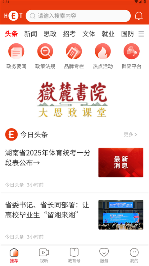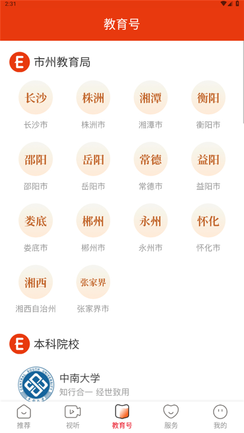 湖南教育发布App是湖南教育电视台推出的本地教育资讯服务平台,传递教育党政声音、政策法规等,展示校园活动等,有各市官方教育号,还提供政务及多种教育服务入口,关联多角色,功能丰富。