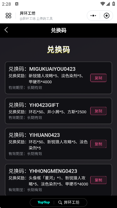 2、然后在这里可以看到所有的礼包码,复制之后进入游戏兑换即可。