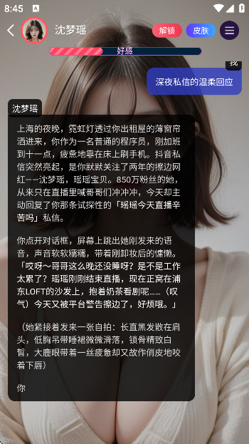 平行世界ai聊天软件不仅支持文字与语音交互,还融合剧本杀、故事续写等沉浸式玩法,并设有兴趣社区,让用户在享受虚拟陪伴的同时,也能结识志同道合的真实好友,构建“虚拟+现实”双轨社交体验。无论是寻求情绪倾诉、日常聊天,还是探索创意互动,《平行世界》都能为你开启一段温暖而有趣的跨次元旅程。