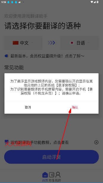 1、首先在首页选择你的翻译语言和翻译模式,点击下方的启动浮窗。
